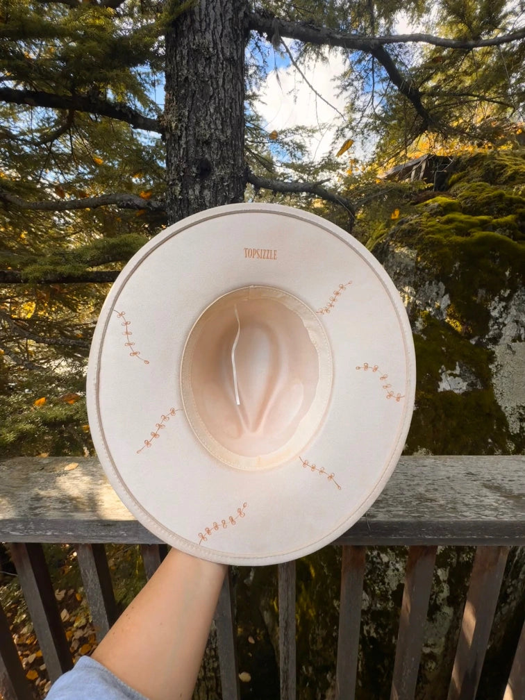 The Floral Vine Rancher (Cream) is a unique hat, hand burned with intricate floral designs. Made with the highest craftsmanship, this statement piece will elevate any outfit and showcase your individual style.